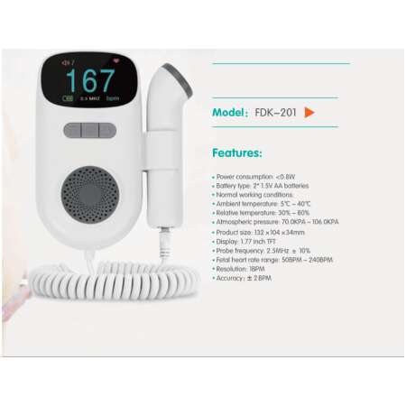 Mini Doppler, Detect and Display Fetal Heart Rate FDK-201