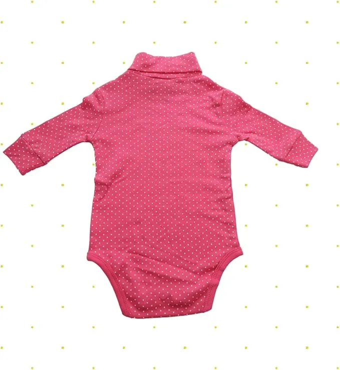 - Pink Dots Bodysuit: Pink Dots bodysuits are perfect for newborns and can be worn at a playdate or a simple photoshoot. These cute onesies have a turtleneck design that keeps the baby’s neck warm and covered from drafts.