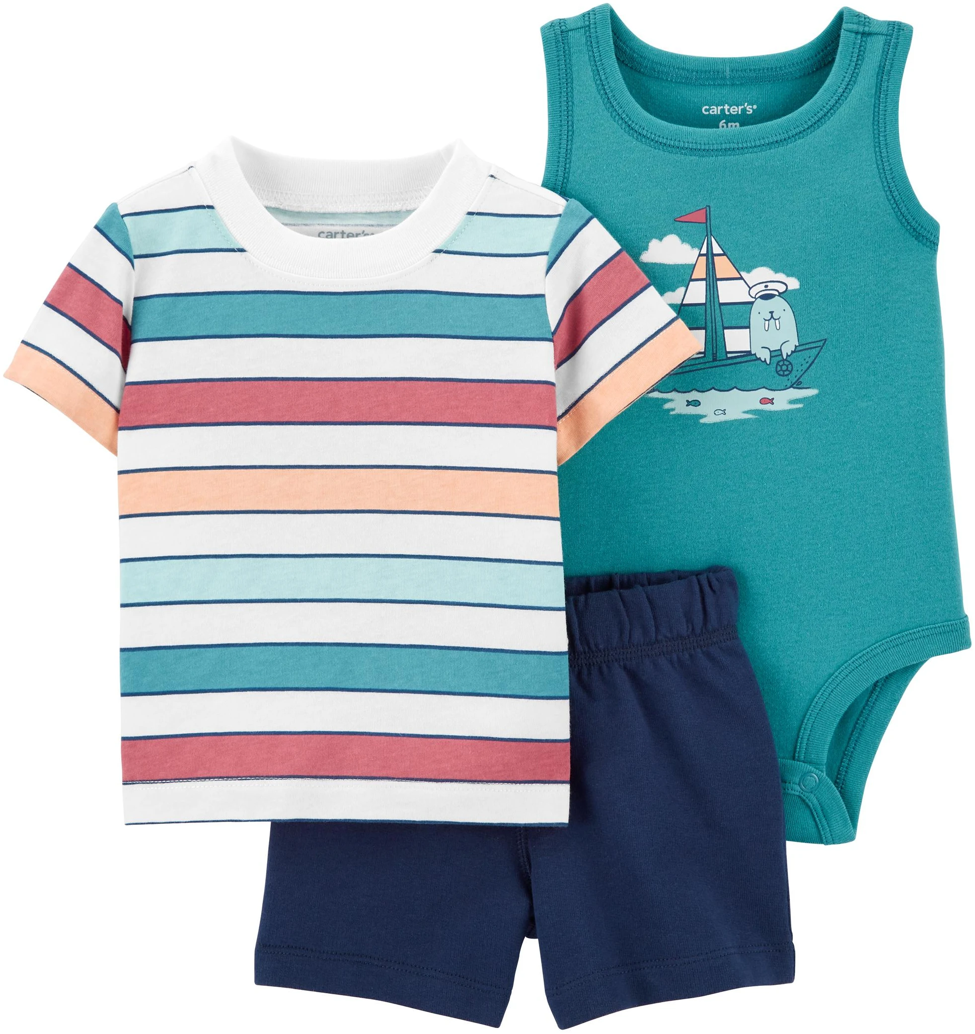 This three pack short set comes in easy-to-match colors and lightweight soft cotton which is also durable and easy to get on and off your precious infant