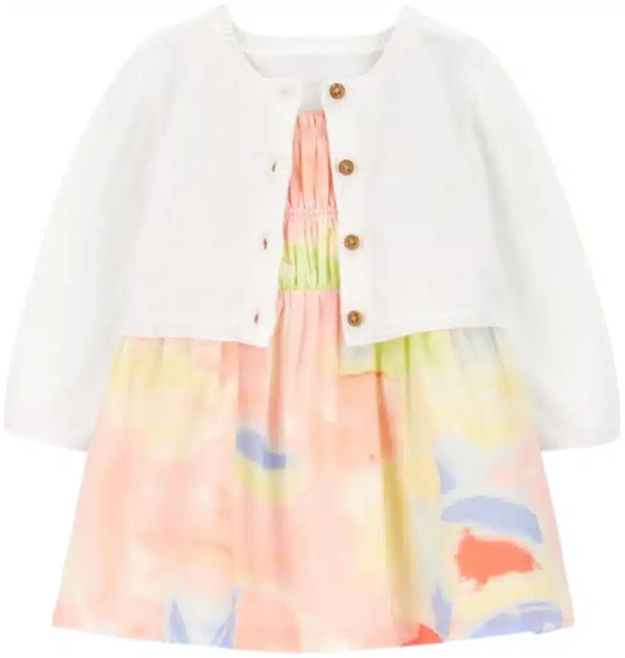 Crafted in soft cotton and made to match, this sweet set is complete with a tie-dye smocked dress and a button-front cardigan to complete the look.