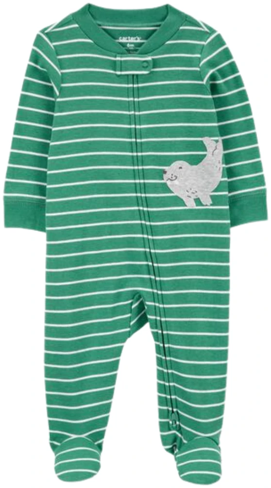 Baby Boy Striped Walrus 2-Way Zip Sleep & Play Pajamas