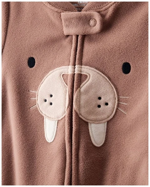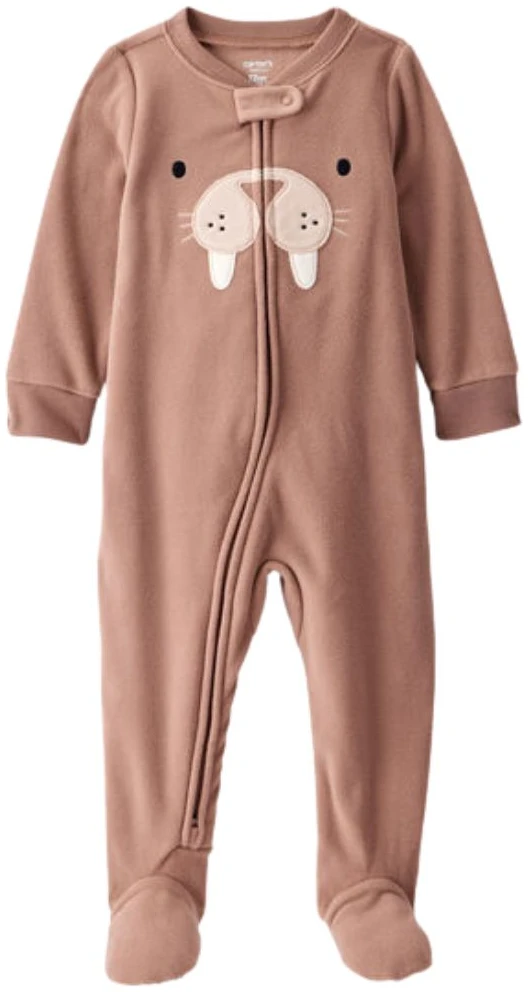 Baby Boy Walrus Loose Fit 2-Way Zip 1-Piece Pajamas – Brown