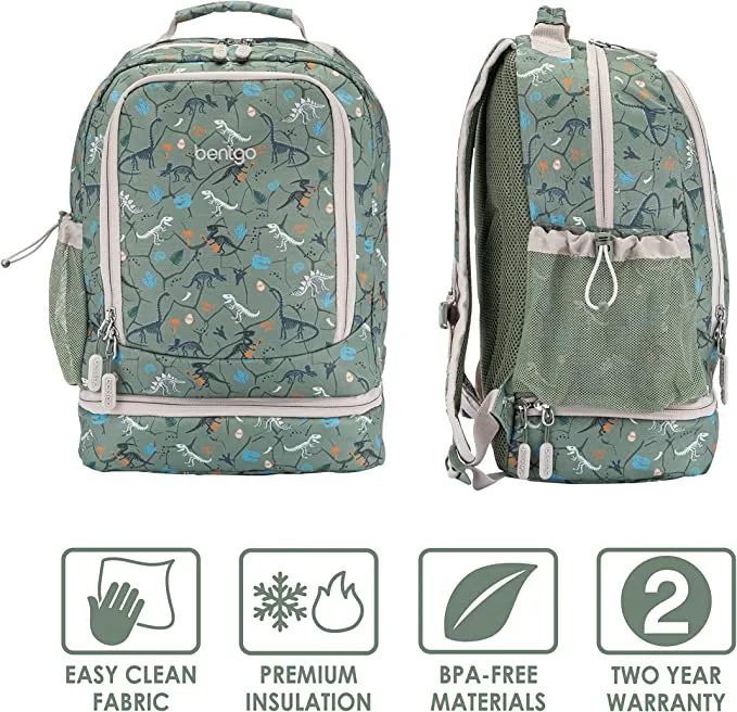 Bentgo Kids Prints 2-in-1 Backpack & Insulated Lunch Bag – Dino Fossils