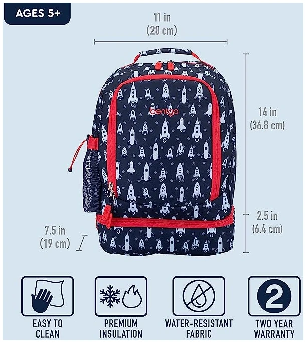 2-in-1 DesignVersatile and stylish, Bentgo gives you the best of both worlds with a combined backpack and lunch bag all in one. The backpack features 2 compartments, including a padded laptop sleeve and an insulated lunch bag that holds any Bentgo Kids lunch box with room for ice packs, utensils, and more. |