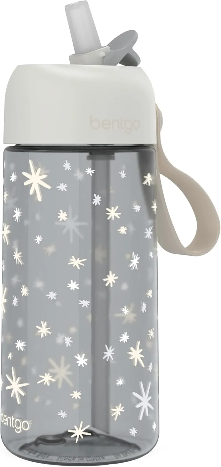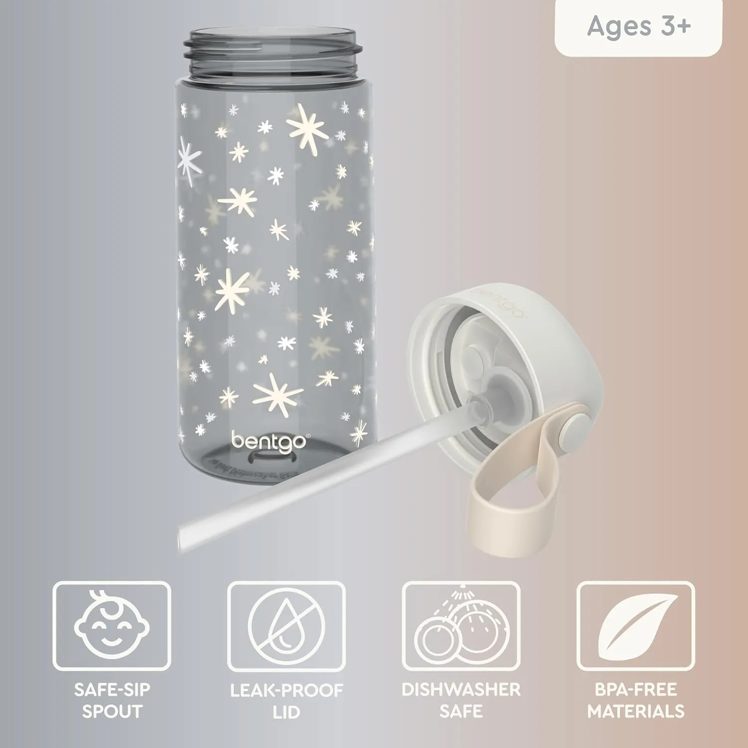 Bentgo® Kids Prints Water Bottle – 15 oz. Leak-Proof, BPA-Free Cups for Toddlers & Children with Flip-Up Safe-Sip Straw – Starry Sprinkle