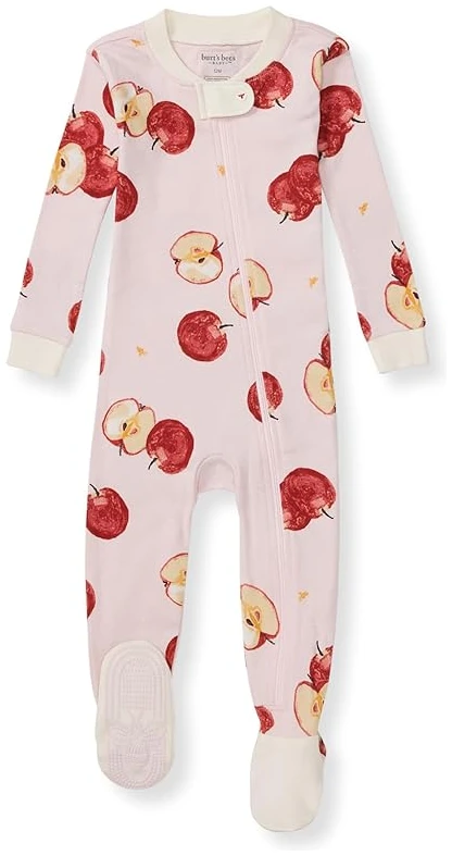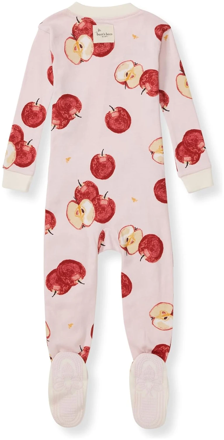 Burt’s Bees Baby Baby Girls’ Organic Cotton Zip-Front Non-Slip Footed Sleeper Pajamas Apple Orchard