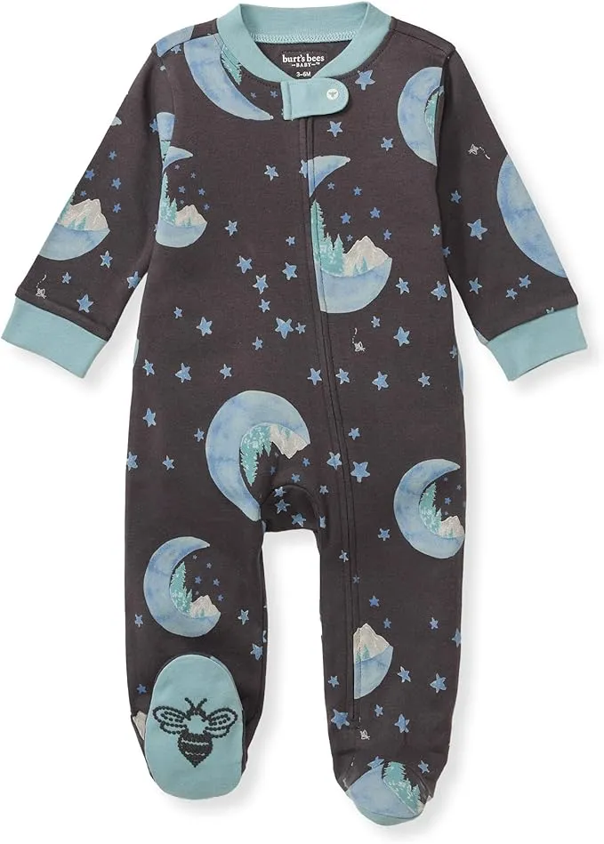 Burt’s Bees Baby Boys’ Sleep & Play PJs, 100% Organic Cotton One-Piece Zip Front Jumpsuit