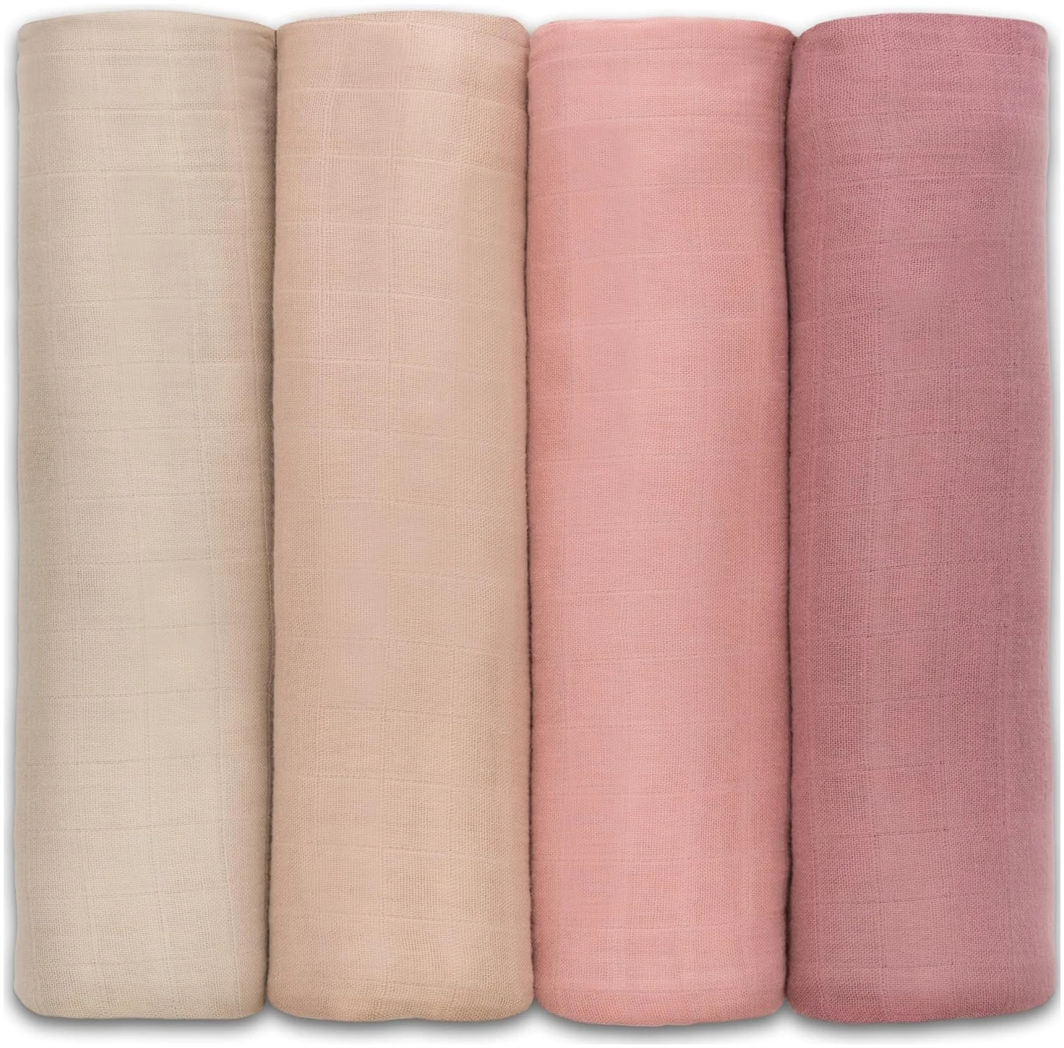 Comfy Cubs Muslin Swaddle Blankets (Pack of 4) – 47” x 47” – Cream, Blush, Bold Blush, Mauve