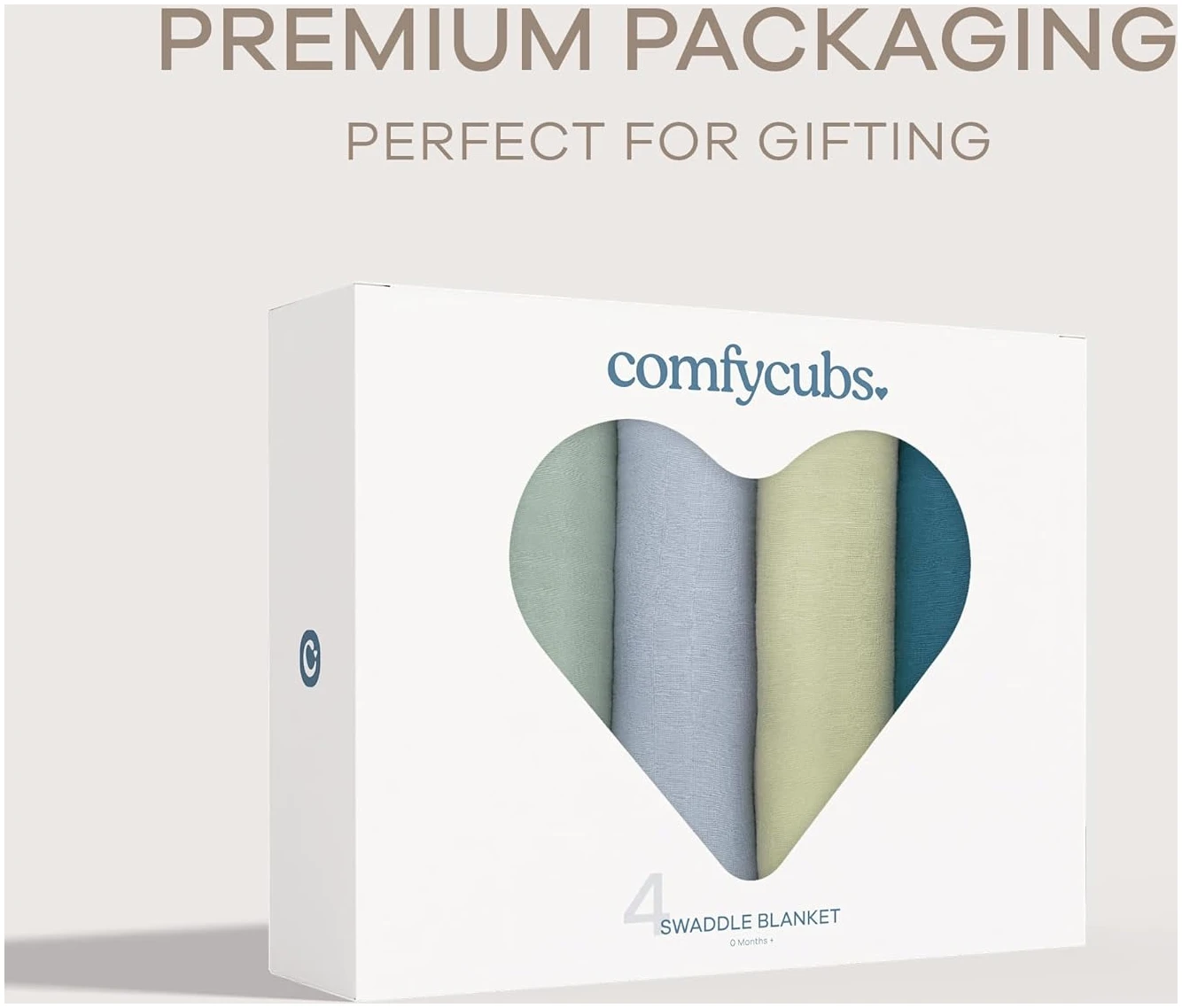 Comfy Cubs Muslin Swaddle Blankets (Pack of 4) – 47” x 47” – Sage, Pacific Blue, Fern, Neptune