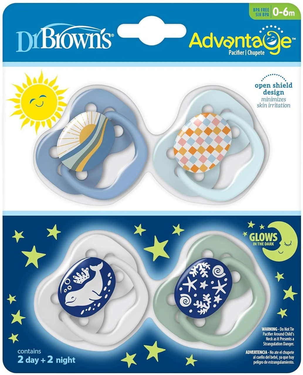 Dr. Brown’s Advantage Pacifier is designed with baby’s acceptance in mind. The Advantage Pacifier is a fully symmetrical soother, with a reversible bulb that can be placed in baby’s mouth in either direction.