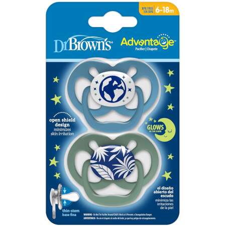 Dr. Brown’s Advantage Pacifier is designed with baby’s acceptance in mind. The Advantage Pacifier is a fully symmetrical soother, with a reversible bulb that can be placed in baby’s mouth in either direction.