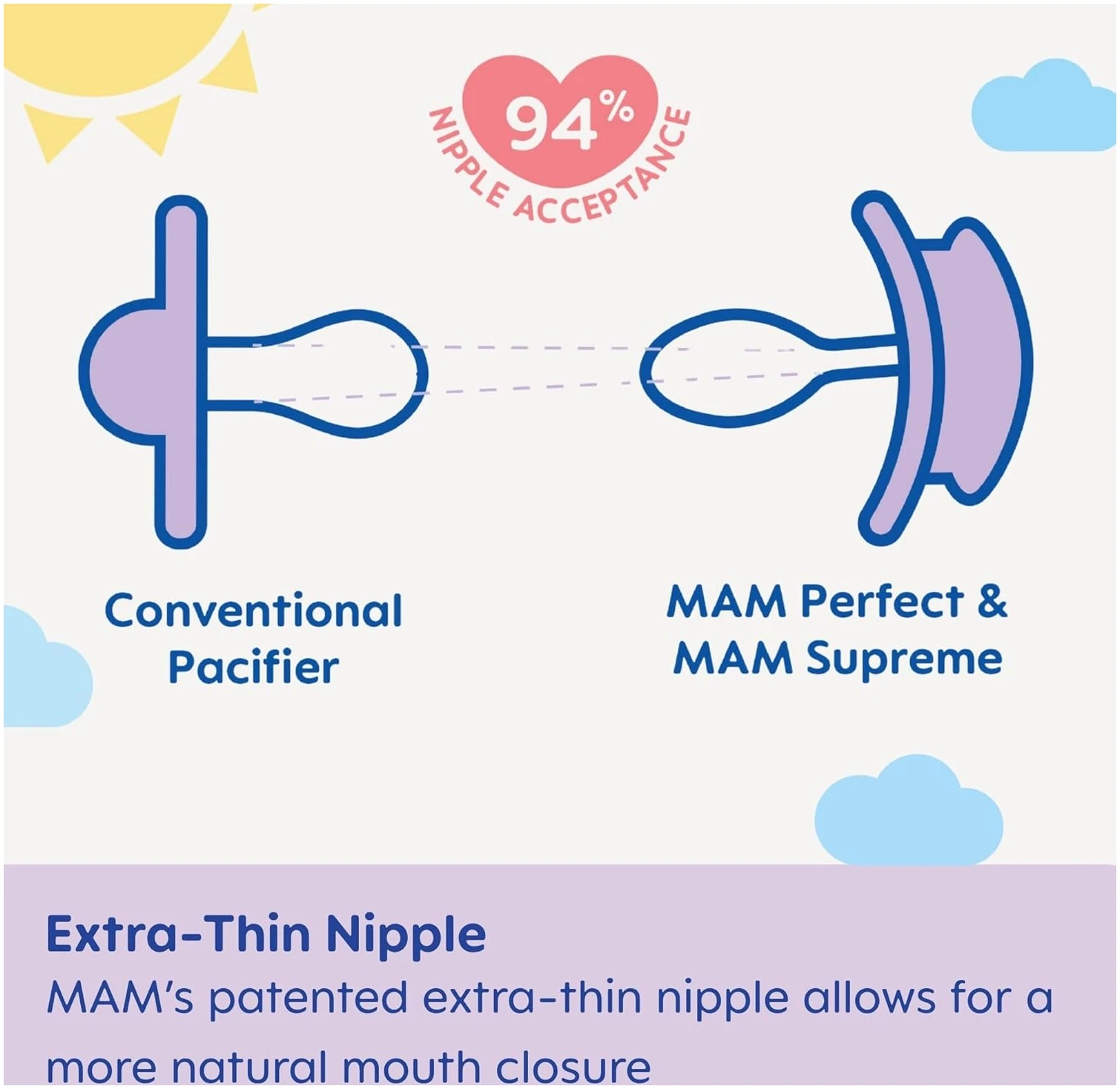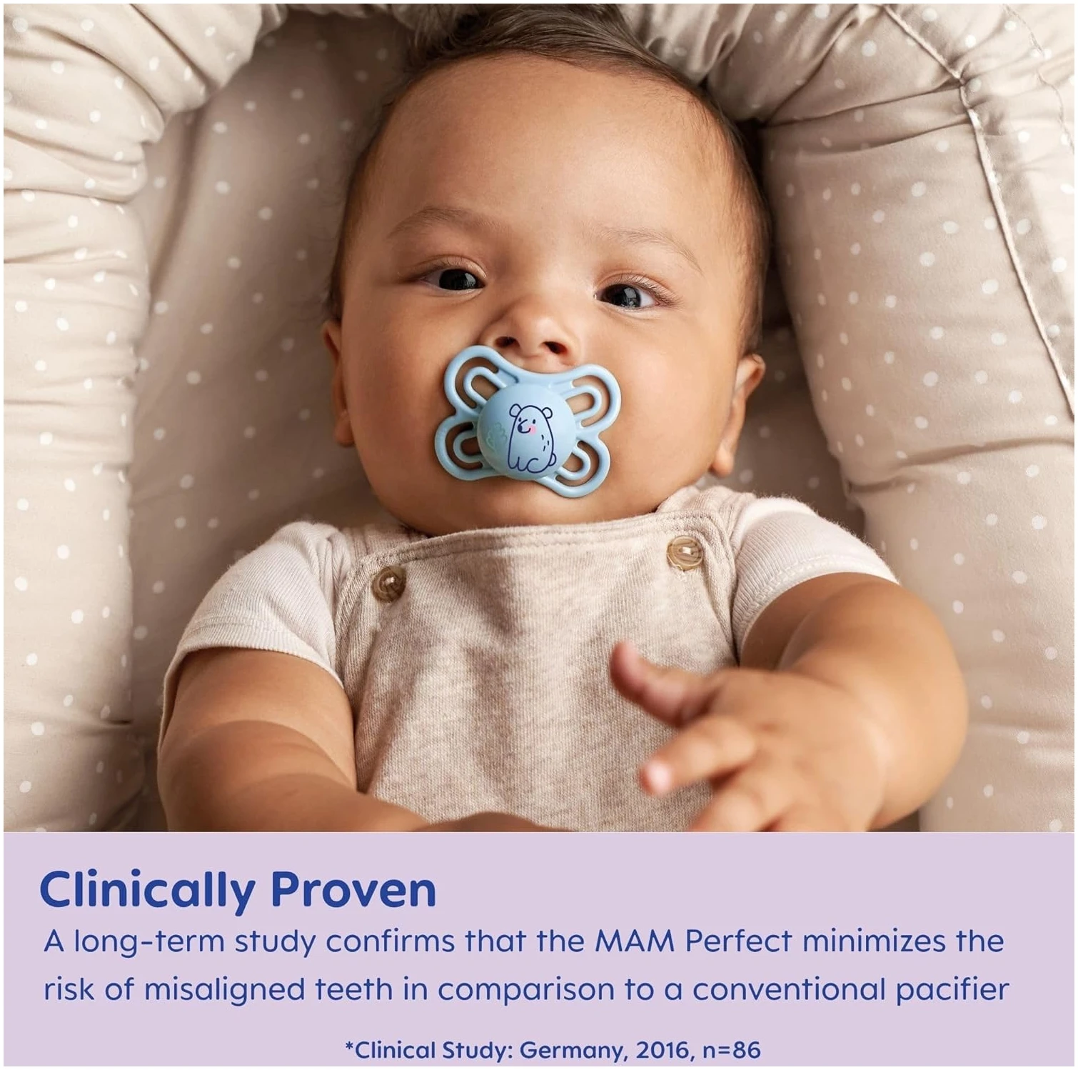 MAM Perfect Baby Pacifier, Patented Nipple, Developed with Pediatric Dentists & Orthodontists, 2 Pack, 6-16 Months, Boy