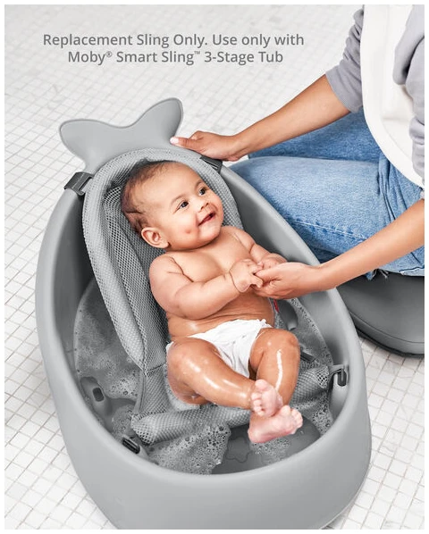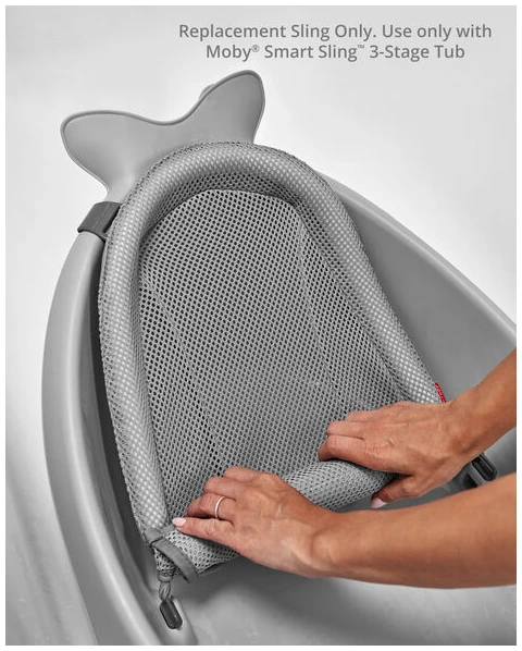 Designed exclusively for use with our MOBY® Smart Sling™ 3-Stage Tub (sold separately), this supportive mesh sling is a convenient extra to swap between bathings and have on hand as a back-up. Crafted in quick-drying mesh with comfort-edge construction, our innovative sling locks into two ergonomic positions: higher for full-body support to cradle newborns, and lower for cushioned seated support for babies learning to sit.