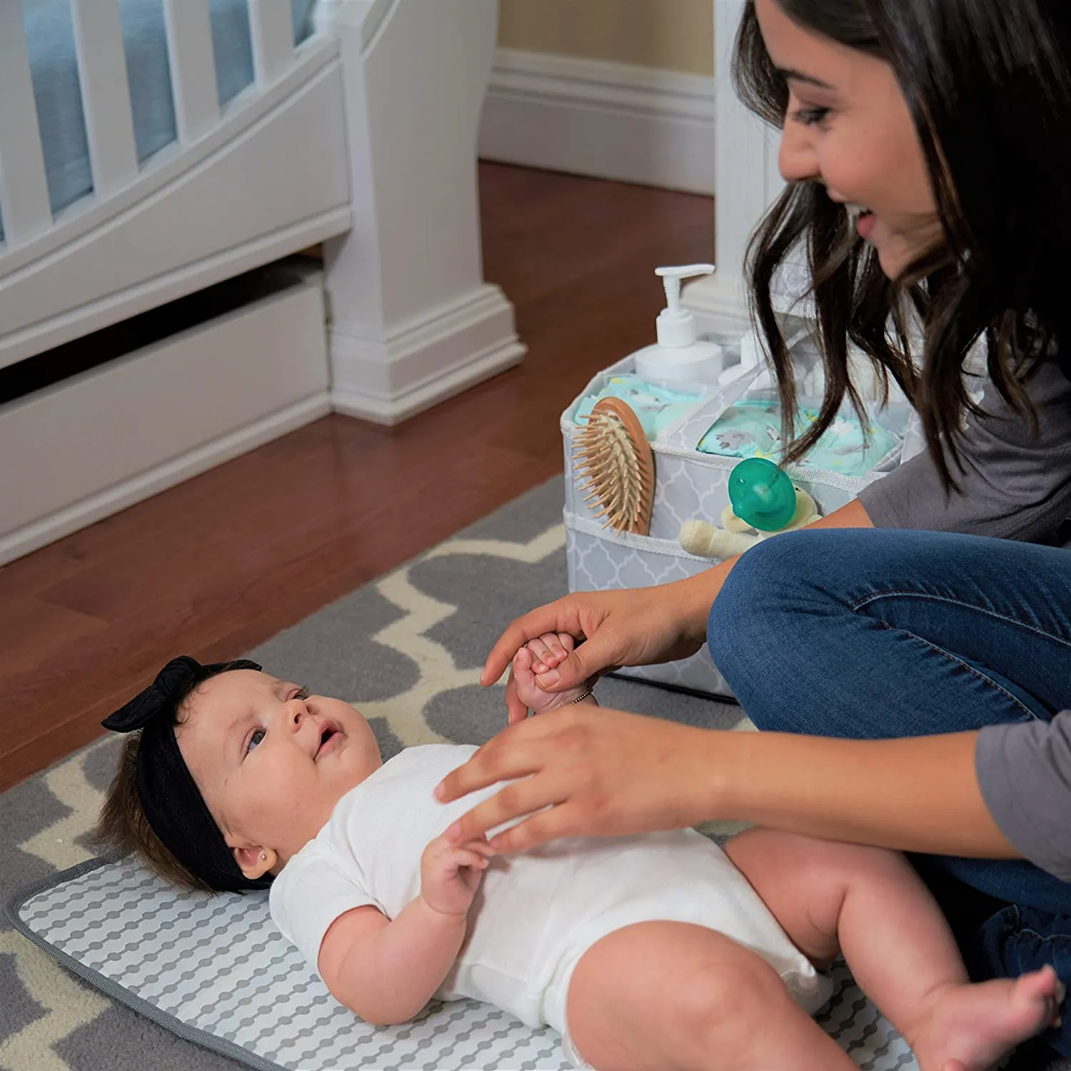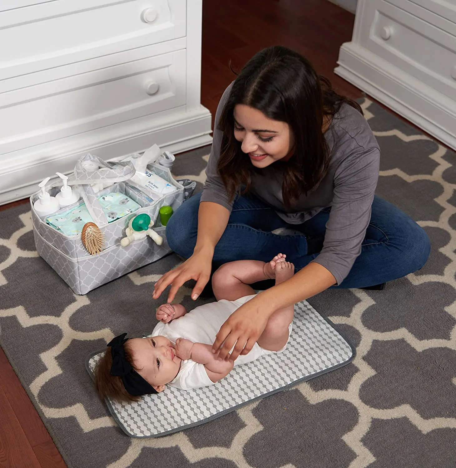 - Portable and Lightweight Design: Easily carry this baby changing mat wherever life takes you. This foldable changing pad design transforms into a compact clutch, making it the ideal baby travel essential.