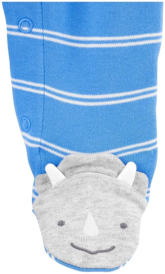 Crafted in soft cotton with a cute print, this 1-piece gets him ready for bed in one easy zip! Carter’s cotton PJs are not flame resistant. But don’t worry! They’re designed with a snug and stretchy fit for safety and comfort.