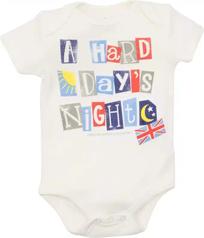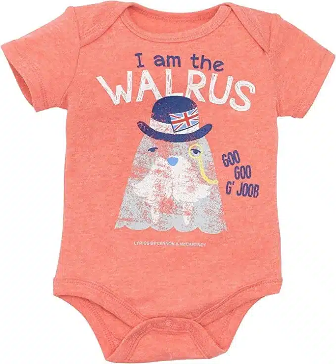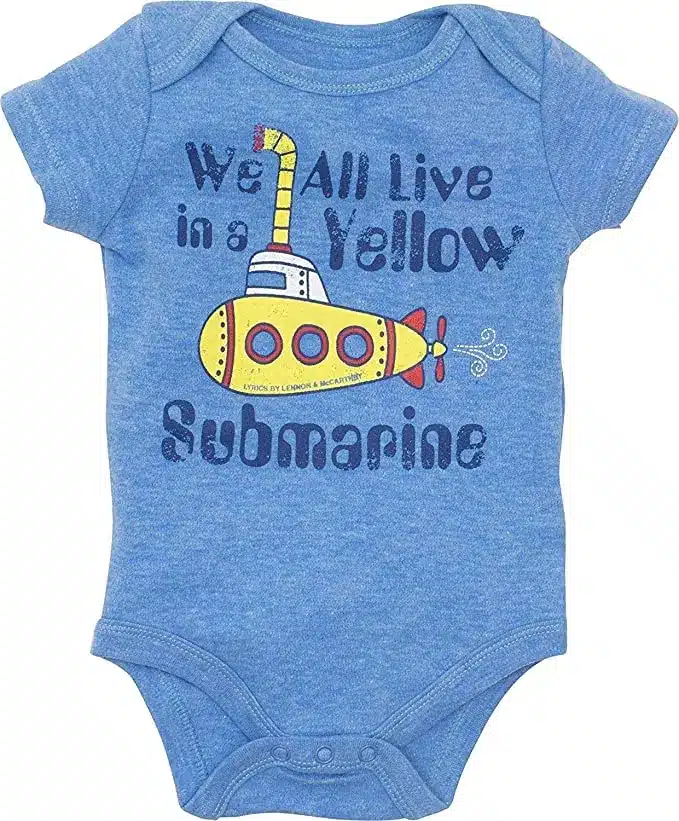 • Awesome 5 pack Beatles bodysuits featuring song lyrics: Let it Be, A Hard Day’s Night, Yellow Submarine, I am the Walrus and Hey Jude